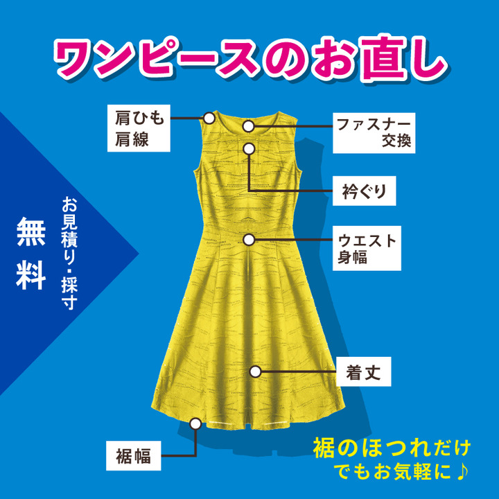 ワンピースのお直し 丈つめなど お気軽にご相談ください リフォームブティック キャンペーン イオン近江八幡ショッピングセンター 公式ホームページ